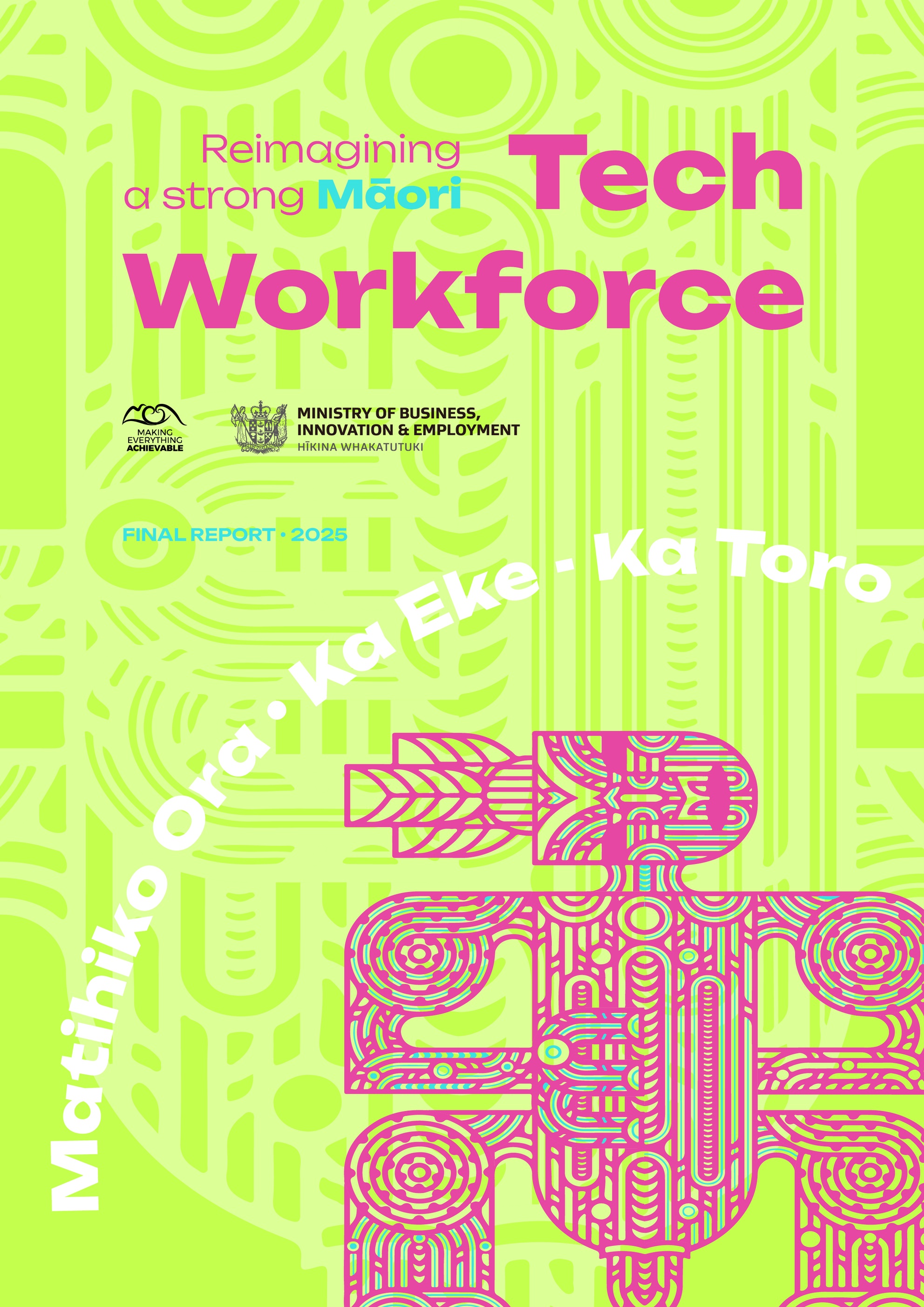 It highlights the report’s release and its vision for strengthening Māori participation and leadership in the tech sector.